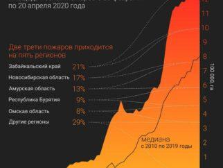 По состоянию на утро 20 апреля 2020 года, площадь, пройденная ландшафтными (преимущественно лесными) пожарами в…