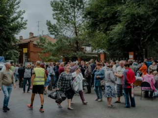Россияне, вынужденные покинуть приграничные регионы, в ожидании гуманитарной помощи во вторник в Курске. Фото…Нанна Хайтманн…