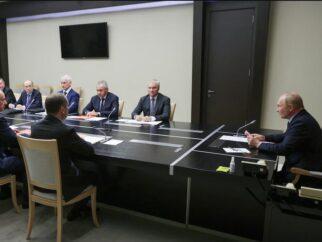Президент России Владимир Путин председательствует в пятницу в своей подмосковной резиденции на заседании Совета национальной…