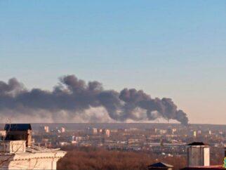 Дым поднимается над аэродромом в Курске. РАЗДАТОЧНОЕ ФОТО, РАССМОТРЕННОЕ АДМИНИСТРАЦИЕЙ КУРСКОЙ ОБЛАСТИ РОССИИ / ASSOCIATED…