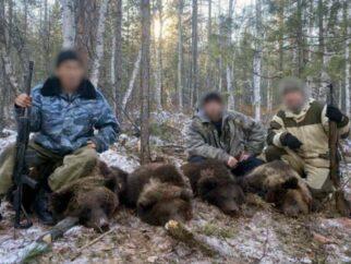 После охоты на берлоге в Качугском районе, октябрь 2021. Фото: ГУ МВД по Иркутской области…