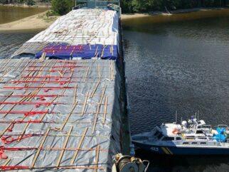 Судно, перевозившее лес из Швеции в Северную Африку, село на мель в устье реки Ангерман…