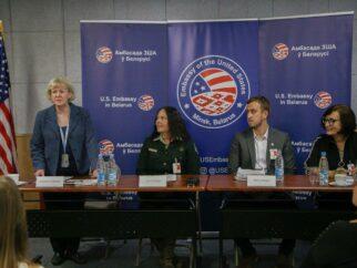 Сотрудники Американского федерального агентства по лесным ресурсам (U.S Forest Service) на пресс-конференции в Информационном центре…