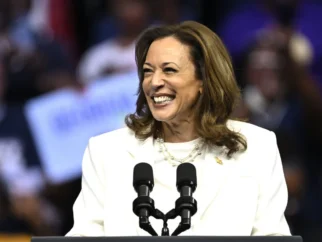 Вице-президент Камала Харрис выступает на предвыборном митинге в Саванне, штат Джорджия, 29 августа 2024 г. Питер Зай…