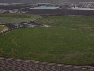 Круговое орошение для выращивания сена и люцерны недалеко от Коркорана, Калифорния — водоемкая система, водоснабжение…