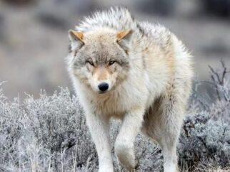 Дикий серый волк в Йеллоустонском национальном парке недалеко от Маммот-Хот-Спрингс, штат Монтана. Джон Моррисон /…