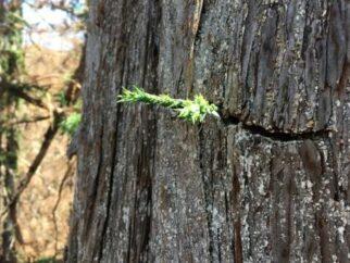 Ранее спящая почка прорастает из прибрежного красного дерева, которое сгорело и считалось погибшим во время…