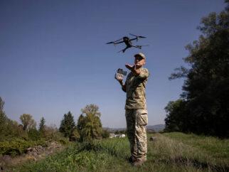 Украинский пограничник запускает беспилотник, который он использует для наблюдения за границей с Румынией. (Томас Питер/Reuters)…