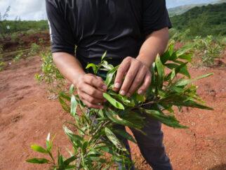 Тедди Ли Консепсьон, сотрудник GROW Initiative, показывает одно из деревьев, которое было посажено в рамках…
