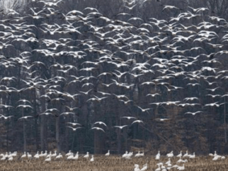 Птичий грипп передается в основном дикими птицами, такими как эти белые гуси в Рутсберге, штат…