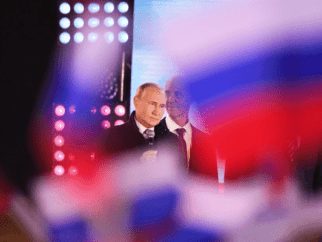 Российский лидер Владимир Путин выступает с речью во время церемонии в Москве в пятницу, посвященной…