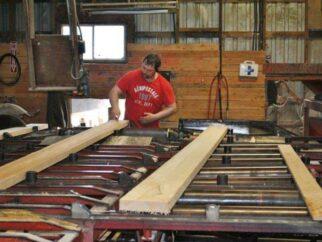 Рабочий в Williams Brothers Ltd. в Барни-Ривер отмечает длину доски, произведенной на лесопильном заводе. Цена…