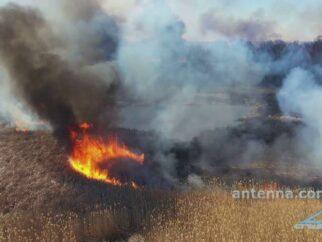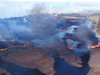 Горить очерет у заплавах Дніпра поблизу Черкас