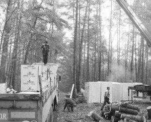 Будівельники розвантажують газобетонні блоки у лісі за селом Прохорівка Канівського району Черкащини. На місці дерев…