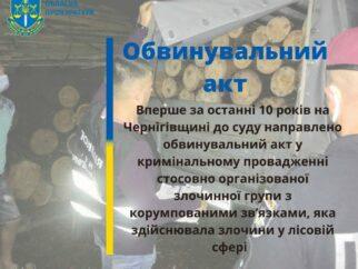 Вперше за останні 10 років на Чернігівщині до суду направлено обвинувальний акт у кримінальному провадженні стосовно організованої злочинної групи з корумпованими зв’язками, яка здійснювала злочини у лісовій сфері