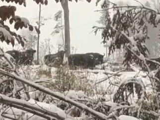 Рідкісні тварини зубри потрапили на відео, гуляючи засніженими Карпатами. На кадрах – не менше десятка…