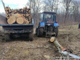 У лісосмузі села Глиниця правоохоронці викрили чотирьох чоловіків, які незаконно рубали деревину і вантажили на машини