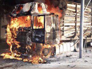 На Прикарпатті горіло авто, завантажене деревиною (ФОТО)