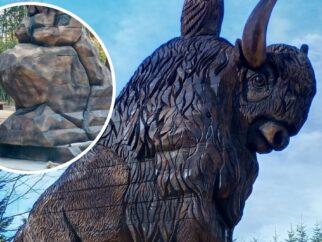 Прикарпатець бензопилою вирізав із дерева 5-метрового зубра