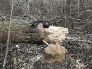 В низовье Днепра бобры превращаются в настоящую экологическую проблему. Фото: Изгрызенное дерево на берегу малой реки.…