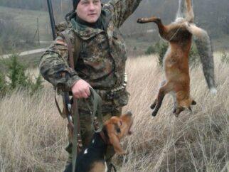На фото: Красавец… Лис? Гончак? (тут я сомневаюсь: может и сука) Его хозяин? Это дело…