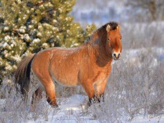 Лошади Пржевальского, тетерева и косули в Чернобыльской зоне доказали, что мощные снегопады им нипочем. Фото