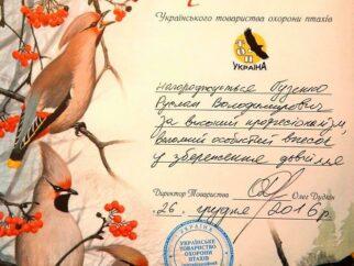 Награждение первого заместителя начальника Киевского облуправления лесного хозяйства Р.В.Гузенко за создание охранных зон для гнезд редких птиц