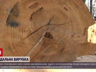 Ботаники объяснили, почему в Голосеевском парке Киева пилят столетние дубы. Видео