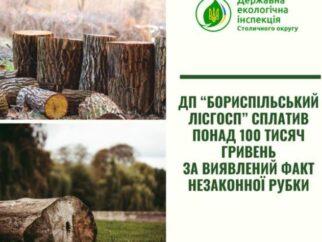 На Київщині державне підприємство “Бориспільській лісгосп” сплатило штраф на суму у понад 100 тисяч гривень. Лісівників звинуватили…