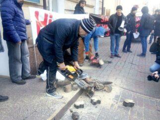 Пикет против незаконной вырубки лесов в Украине: активисты рубят дрова