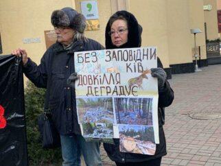 С топорами и бензопилами представители Киевского эколого-культурного центра (КЭКЦ) и общественные активисты провели пикет под…