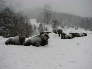 У Карпатах поблизу Сколе мешкають два стада зубрів, які ворогують між собою