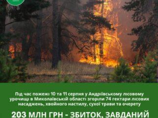 Названа сумма ущерба от масштабного лесного пожара в Николаевской области