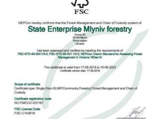 Лісгосп на Рівнещині отримав сертифікат міжнародного зразка