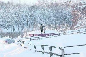 Житель нової вулиці в обласному центрі — Вінницьке лісництво зчищає з даху свого гаража сніг.…