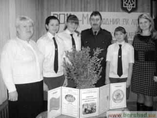 На знімку (зліва направо): директор Сумівської ЗОШ І-ІІІ ступенів Г.М. Гуз, дев’ятикласниця Світлана Пастушенко, лісничий…