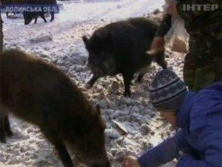 Ученики луцкой школы подкармливают лесных зверей