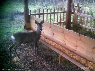 З першими холодами дикі тварини стали частими гостями на підгодівельних майданчиках у лісі