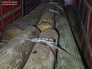 На трасі в Житомирській області патрульні зупинили вантажівку з деревиною, на яку не було документів. ФОТО