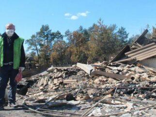 Фото: Пан Юрій стоїть біля згарища на місці свого будинку в Личманах на Житомирщині “Здається,…