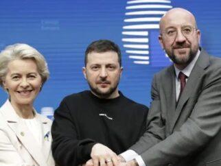 Голова Європейської комісії Урсула фон дер Ляєн, президент України Володимир Зеленський та голова Європейської ради…