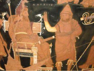 Дарий I Персидский (в центре) и его свита, изображение с вазы, расписанной между 340 и…