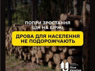 Попри зростання цін на дров’яну деревину на біржі, для населення ДП «Ліси України» збереже ціни на рівні попереднього періоду