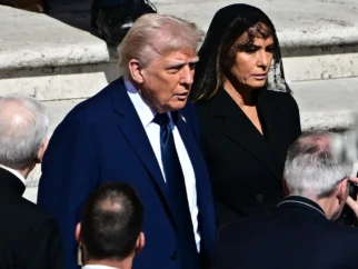 Дональд Трамп и Мелания Трамп были среди высокопоставленных лиц, присутствовавших на похоронах Папы Римского в…