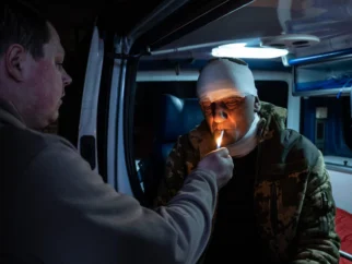 Сергей курит сигарету перед тем, как его эвакуируют в госпиталь Фото: Фермин Торрано В то…