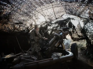 Военнослужащий 79-й десантно-штурмовой бригады Украины ведет огонь по российским войскам в районе Марьинки, Украина, в…