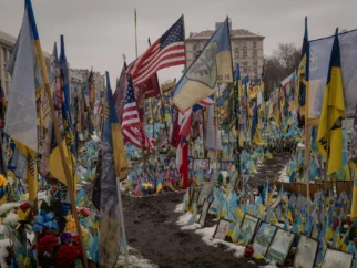 Мемориал погибшим украинским воинам и добровольцам в Киеве в субботу. Фото…Николь Тунг для The New…