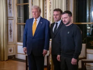 Президент Владимир Зеленский (справа) с президентом Трампом в Париже в декабре перед своей инаугурацией. Фото…Джеймс Хилл…