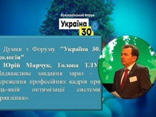 Юрій Марчук: «Надважливе завдання зараз – збереження професійних кадрів при будь-якій оптимізації системи управління». Думки з Форуму. «Україна 30. Екологія”