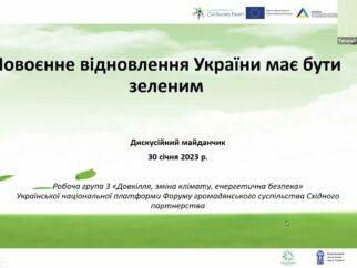 Дискусійний майданчик “Повоєнне відновлення України має бути зеленим” (30 січня 2023 р.)